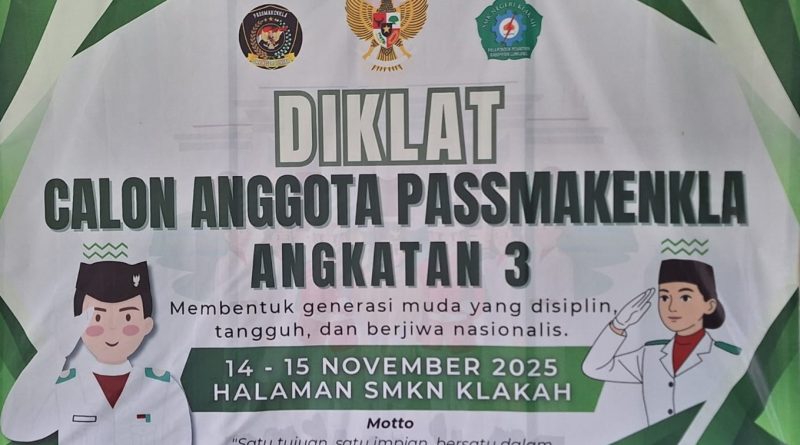 SMKN Klakah, 14–15 November 2025 — Kegiatan Pendidikan dan Pelatihan (Diklat) Calon Anggota PASSMAKENKLA Angkatan 3 resmi digelar selama dua